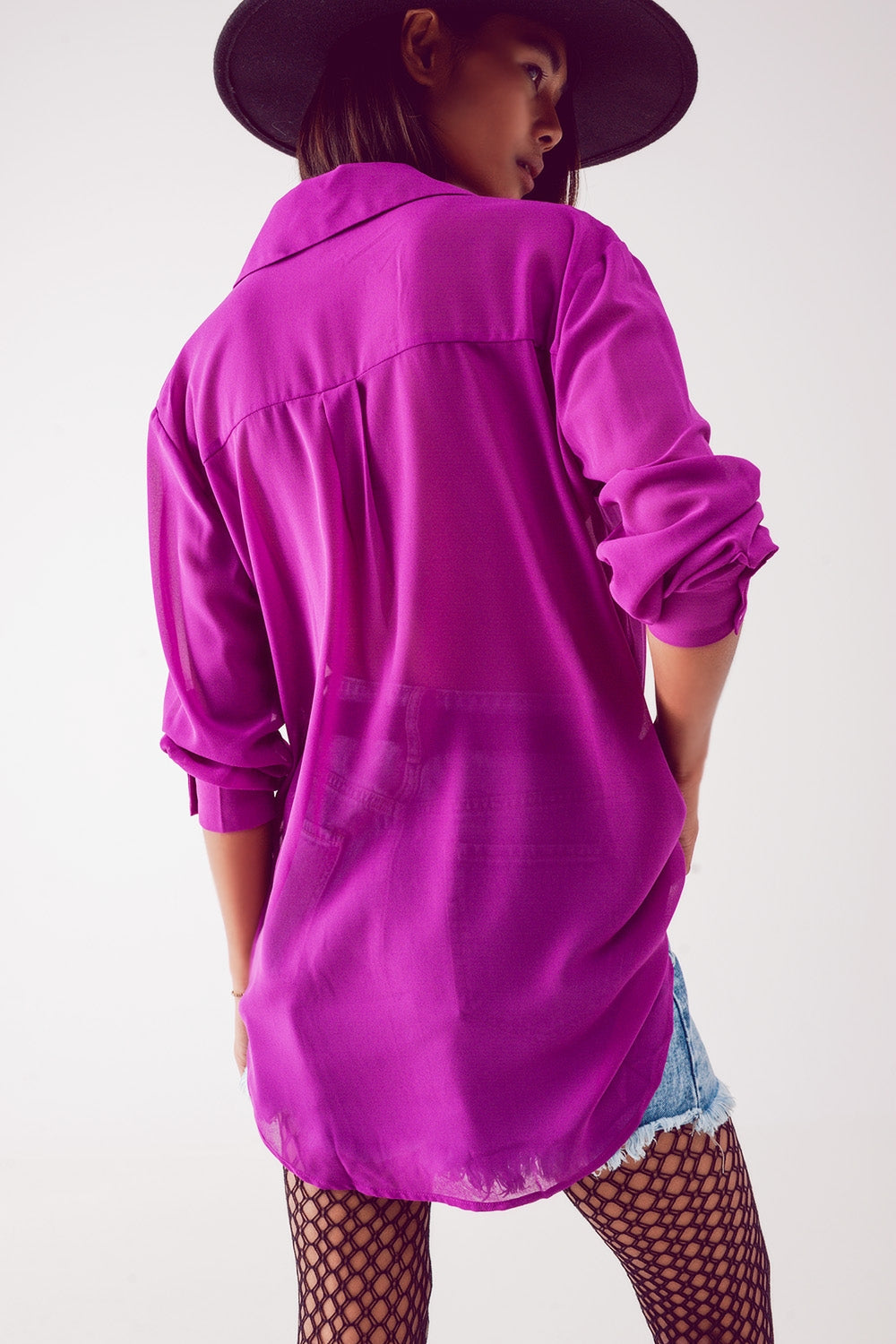 Dive into a blend of comfort and style with our Elegant Purple Chiffon Blouse, perfect for daily wear. This blouse features a chic wide collar neckline that adds a touch of sophistication to your ensemble.